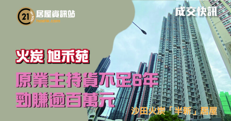 新居屋的升值潛力相當驚人,市值逆市上升的同時,升幅亦遠遠跑贏大市,僅約六年樓齡的沙田火炭「半新居屋」旭禾苑,近日再錄居二市場成交,議價幅度只是象徵性減價5萬元,世紀21奇豐物業第一城2分行區域經理吳元利表示,市場新近錄得旭禾苑中層3室,實用面積302平方呎,1房1廳間隔,眺望東北市區景,業主原先放盤叫價為320萬元,最終象徵性減價5萬元成交,減幅僅1.6%,終以315萬元居二市場成交,實用面積呎價達10,430元,上月同類型一房戶成交價僅278萬元。