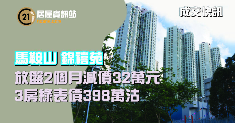 世紀21奇豐物業天宇海分行經理黃宗信表示,該行新近錄得馬鞍山錦禧苑成交,單位為錦欣閣(B座) 低層04室,實用面積554呎,屬3房2廳間隔,座向南面望內景,單位放盤2個月,當時叫價440萬,減價32萬元,獲買家以398萬元(綠表價) 承接,實用面積呎價7,184元。